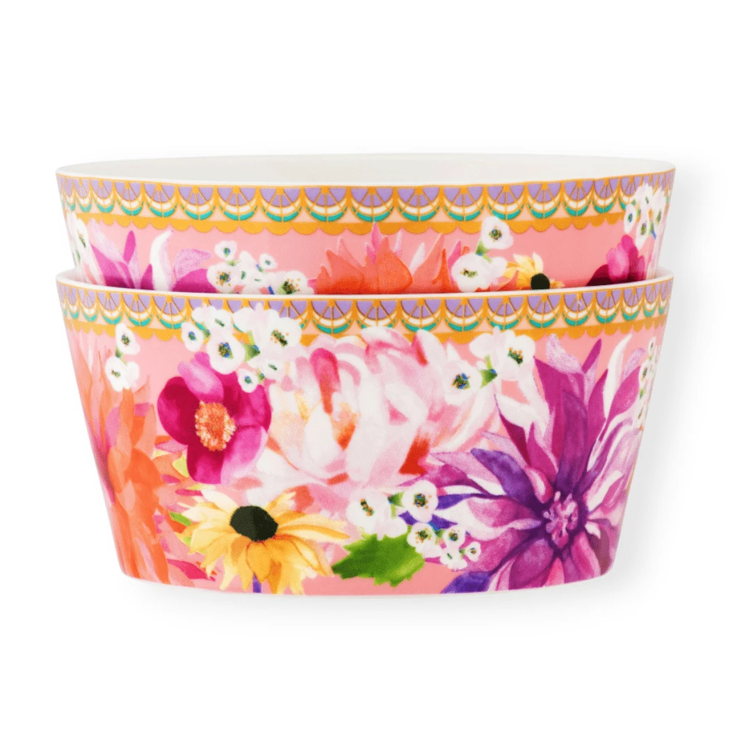 These pink Dahlia Daze bowls bring luxury to the table. Part of the Teas & C s collection, they feature a sumptuous design inspired by fashion and nature. Perfect for serving fresh fruit and desserts, this pair of bowls has a classic elegance, made from quality porcelain. Explore the complete Teas & C’s, Dahlia Daze collection to inspire your next tea party, big or small, and for thoughtful gifting combinations. Part of the Maxwell & Williams Teas & C s collection Luxurious pink-themed floral design inspired by fashion and nature Set of 2 x 12cm bowls perfect for fresh fruit and desserts Made from quality porcelain for a touch of elegance Microwave and dishwasher safe